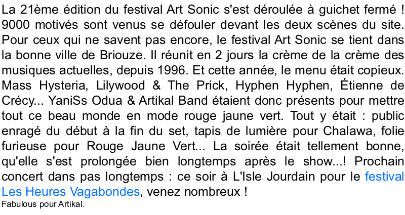 Art Sonic Festival avec Yaniss Odua & Artikal Band
